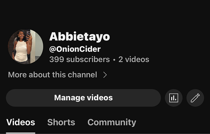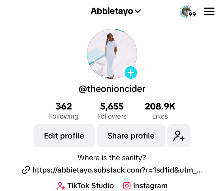 My handle on Twitter, Instagram, Tiktok, YouTube is - Abbietayo (Onion Cider)